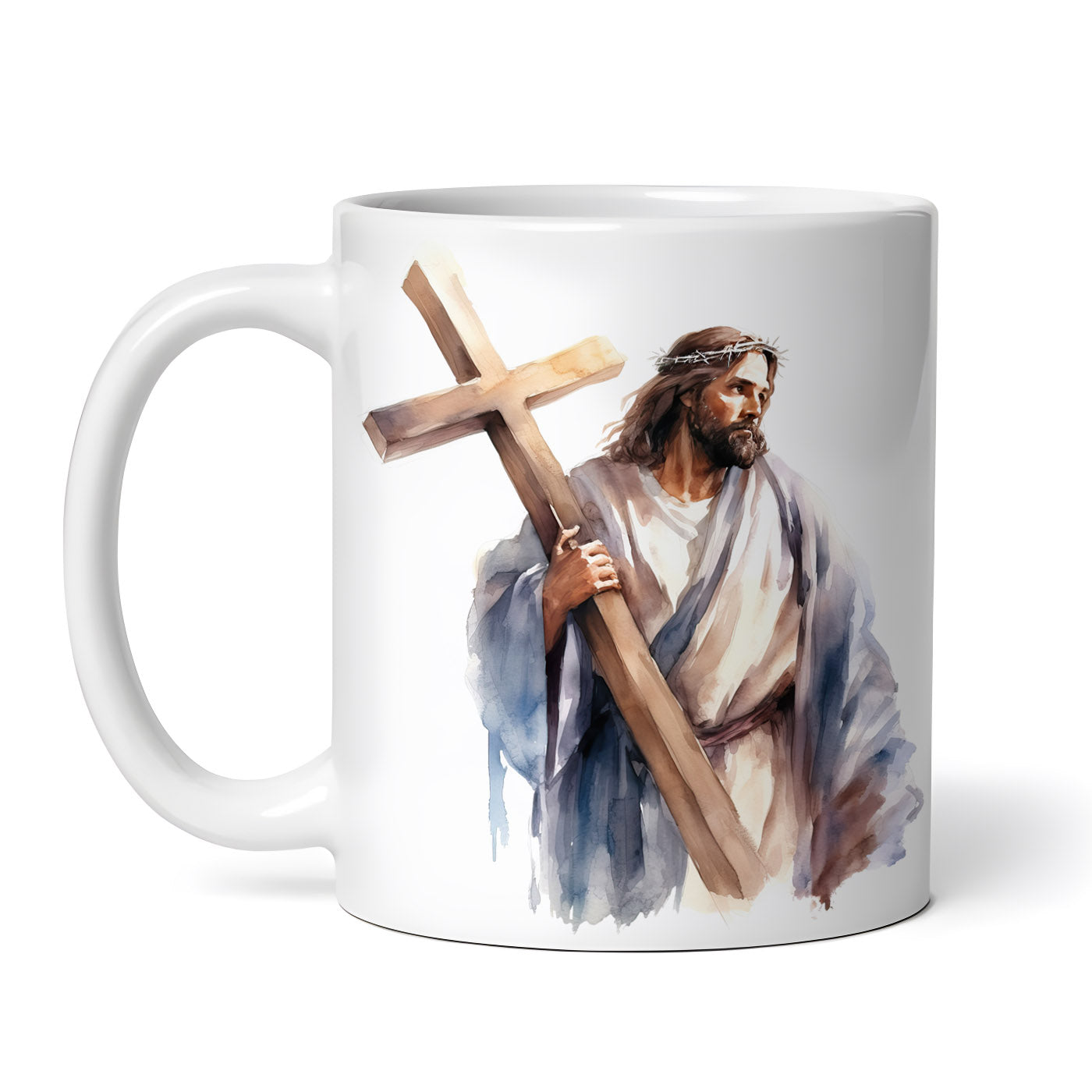 Cana ceramica, Iisus duce crucea, NO4086, 330 ml, Multicolor
