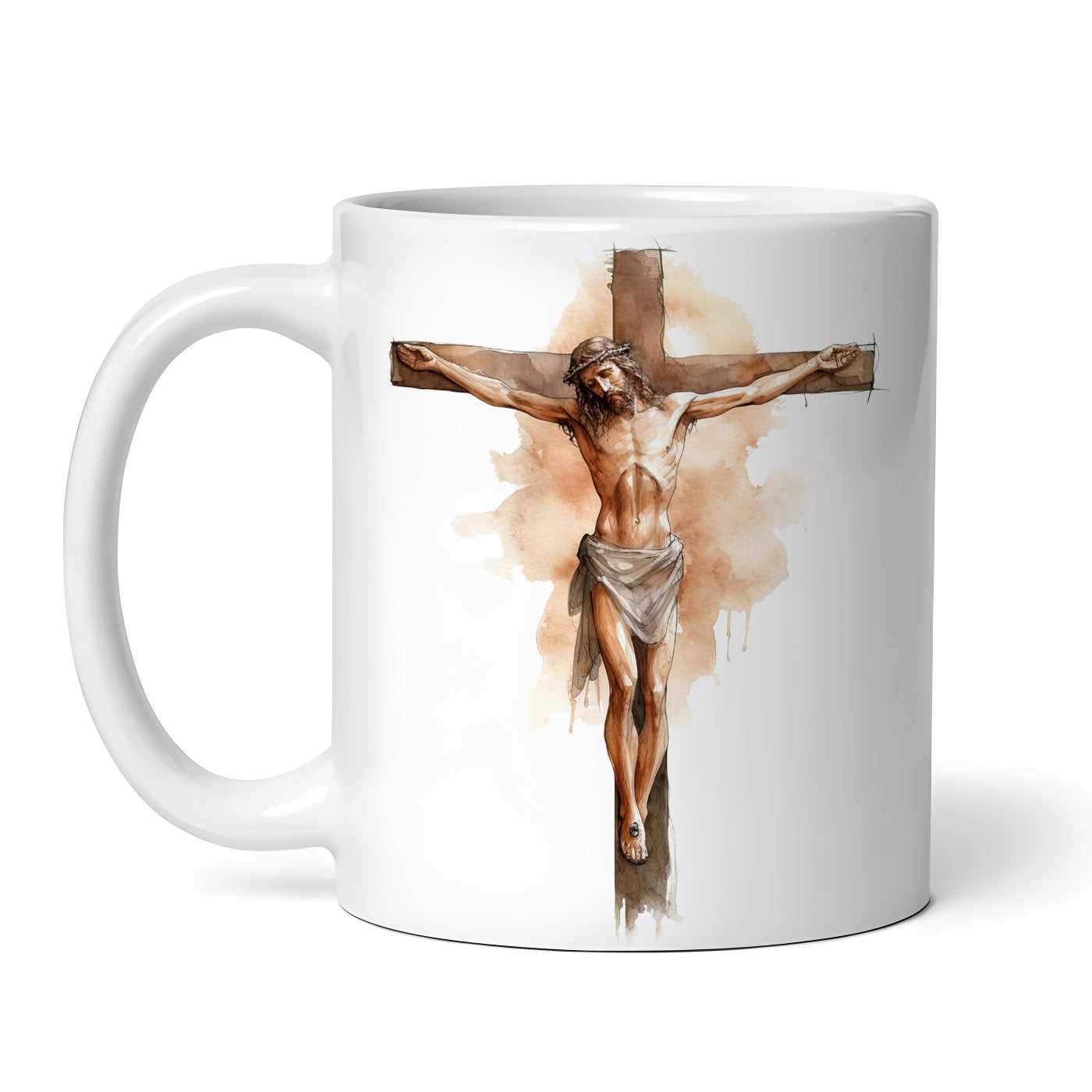 Cana ceramica, Iisus pe cruce, NO2503, 330 ml, Multicolor