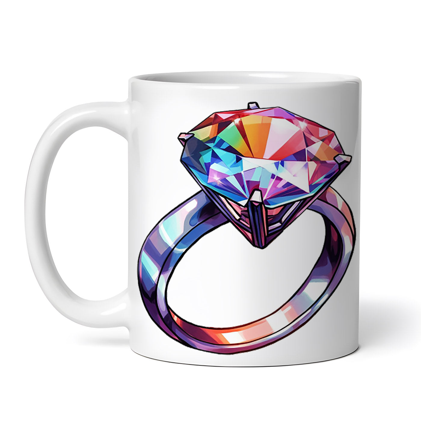 Cana ceramica, Inel cu diamant curcubeu, NO5478, 330 ml, Multicolor