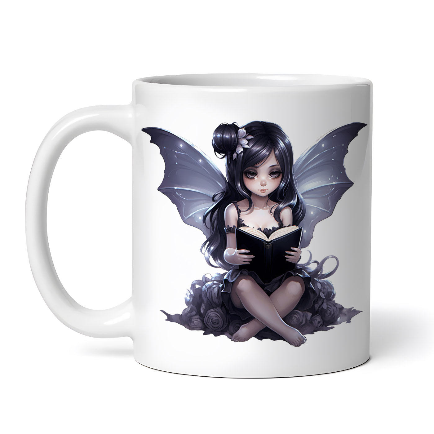 Cana ceramica, Ingerul cu aripi negre citeste o carte, NO5942, 330 ml, Multicolor
