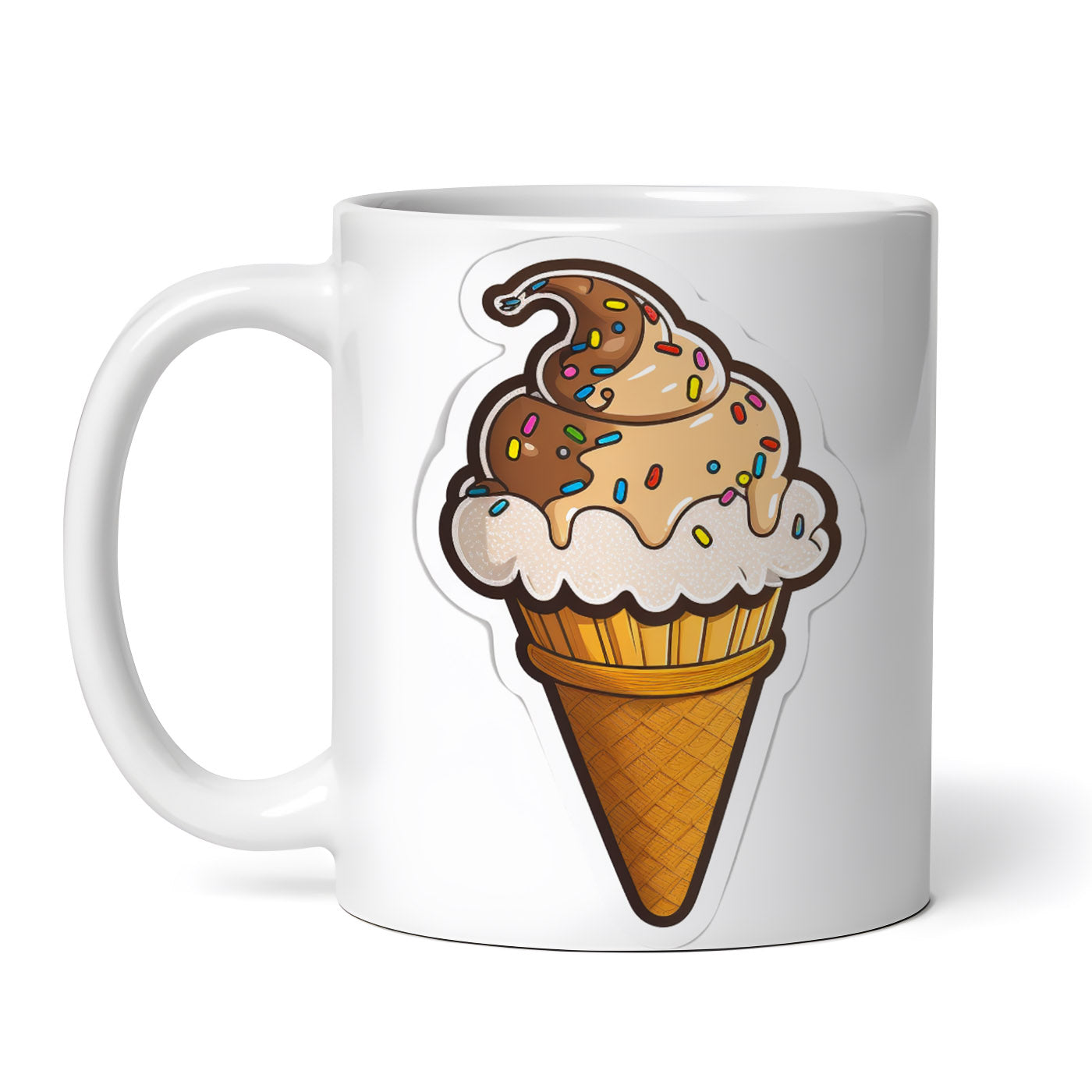 Cana ceramica, Inghetata cu vanilie si alune in con, NO10584, 330 ml, Multicolor