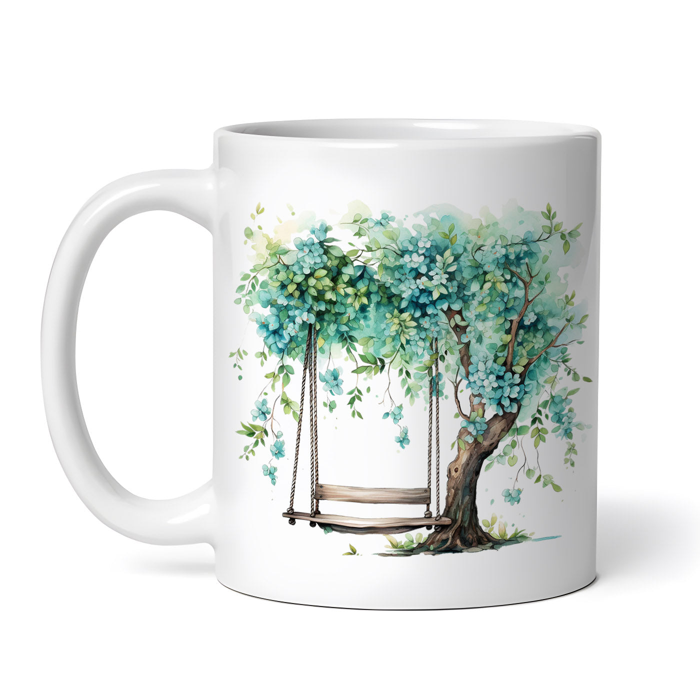 Cana ceramica, Leaganul din copacul albastru, NO1708, 330 ml, Multicolor