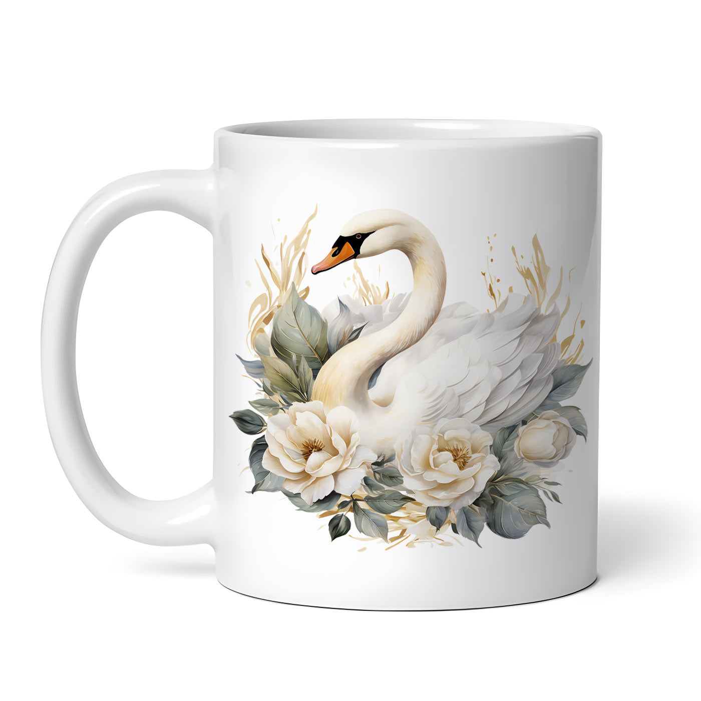Cana ceramica, Lebeda alba in trandafiri, NO1275, 330 ml, Multicolor