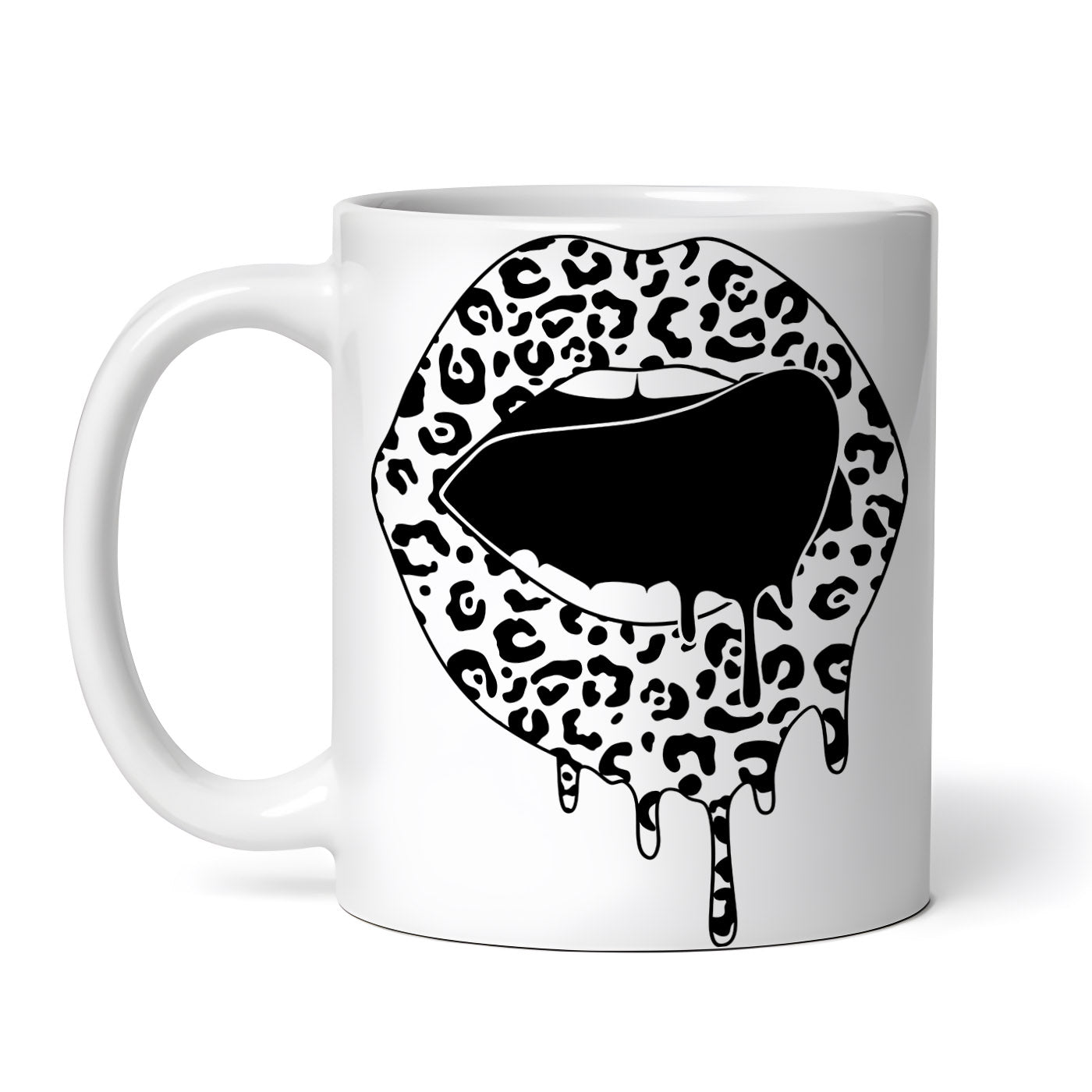 Cana ceramica, Leopard Lips Tongue Dripp BW, NO2812, 330 ml, Multicolor