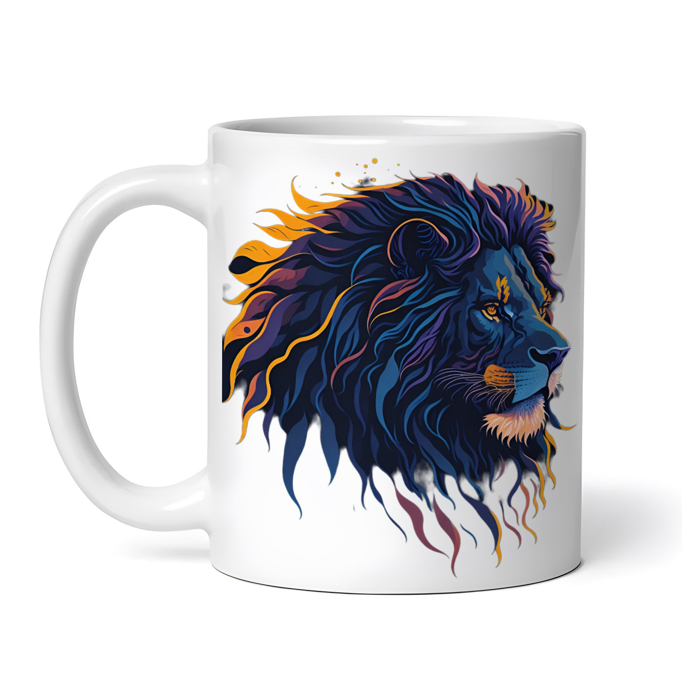 Cana ceramica, Leu in noapte, NO6722, 330 ml, Multicolor