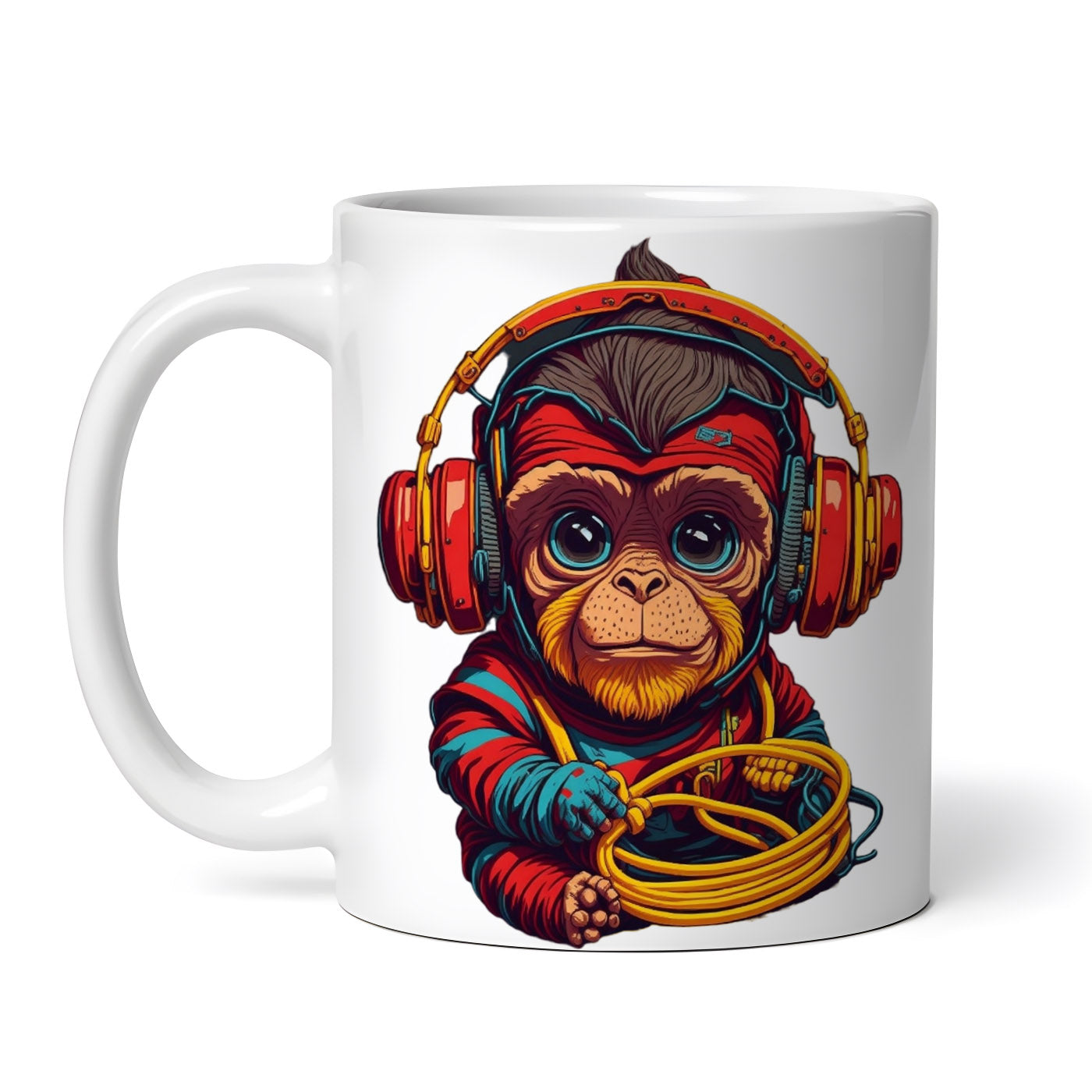 Cana ceramica, Maimuta cu casti, NO6782, 330 ml, Multicolor