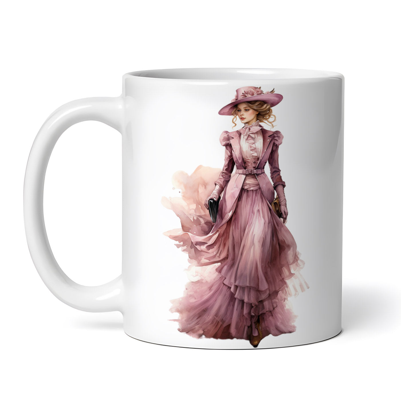 Cana ceramica, Moda victoriana femeie cu rochie Zattana, NO4497, 330 ml, Multicolor