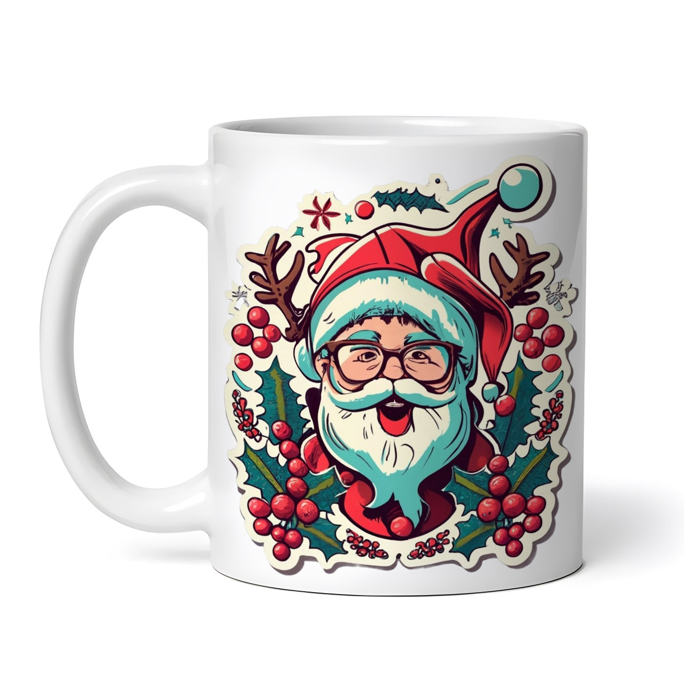 Cana ceramica, Mos Craciun cu coarne de ren, NO1587, 330 ml, Multicolor