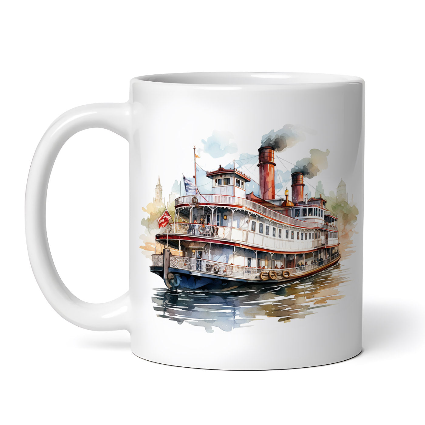 Cana ceramica, Nava cu aburi alba, NO3751, 330 ml, Multicolor