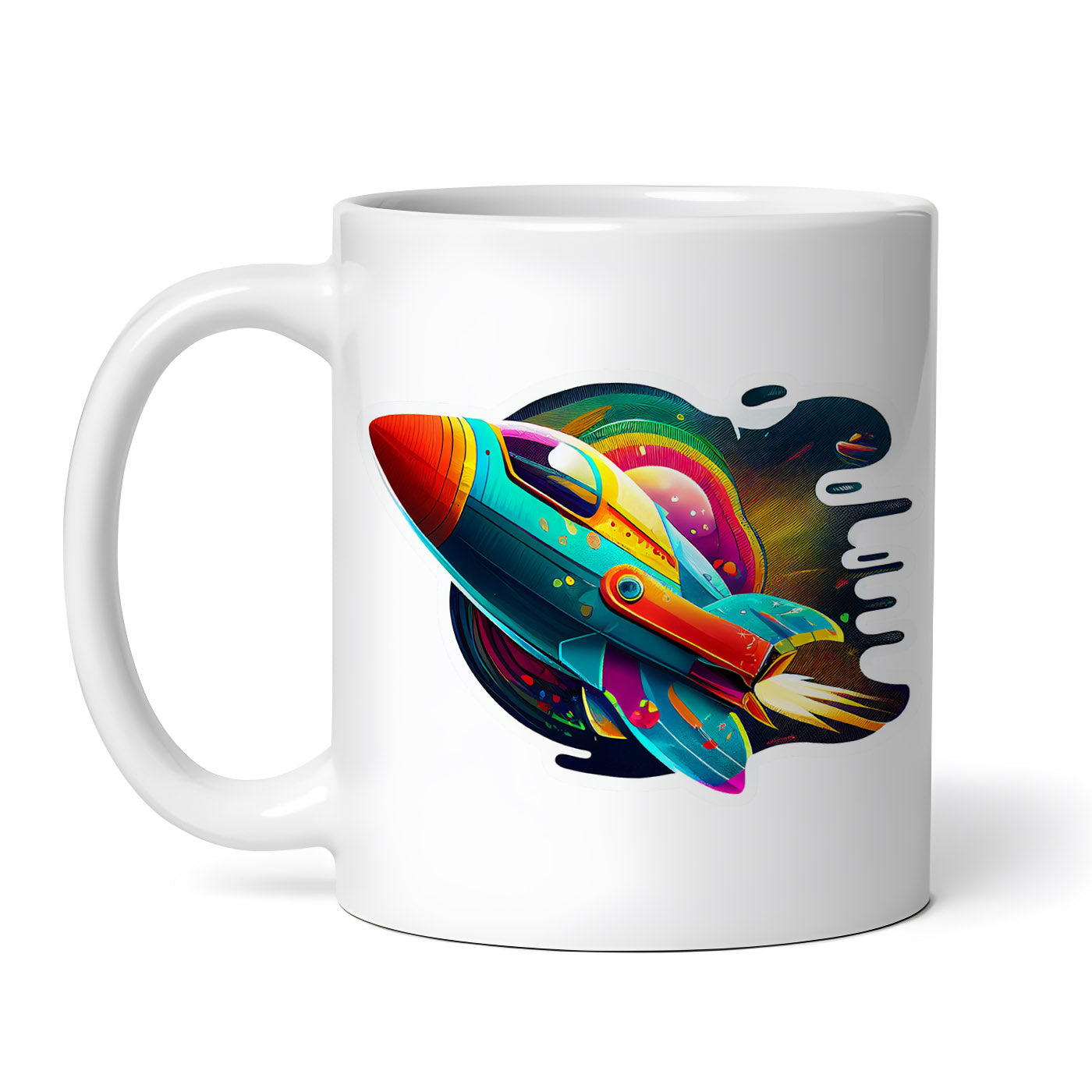 Cana ceramica, Nava spatiala Demetrius, NO1407, 330 ml, Multicolor