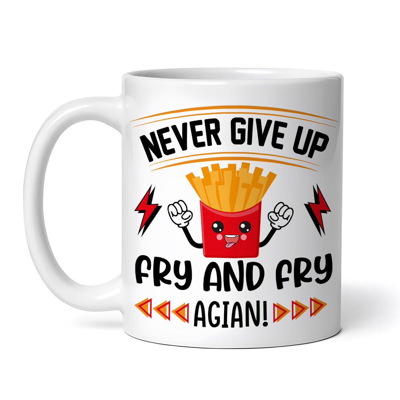 Cana ceramica, Never give up Fry and fry again, NO4429, 330 ml, Multicolor