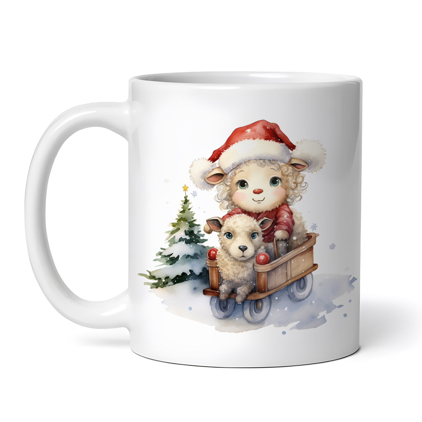 Cana ceramica, Oaia cu mielul de craciun, NO6031, 330 ml, Multicolor