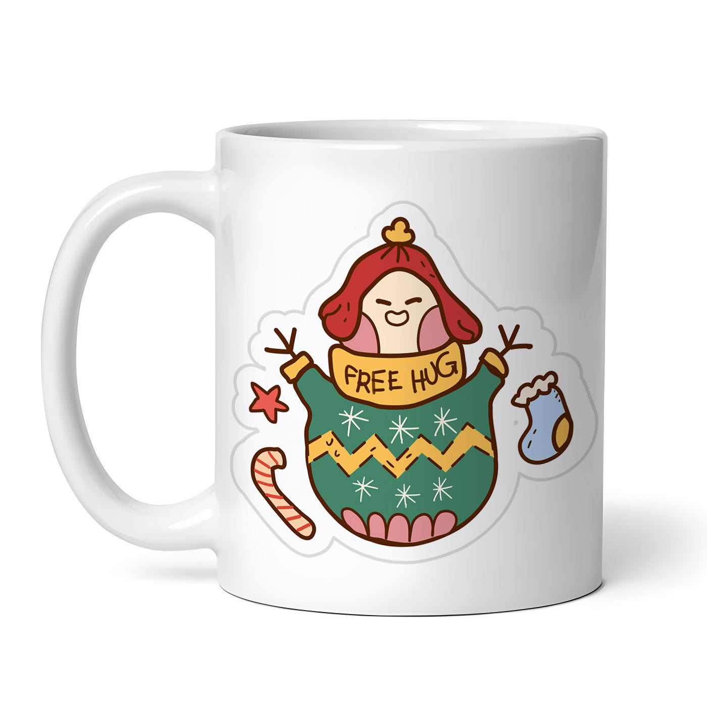 Cana ceramica, Ornament de craciun Free Hug, NO5949, 330 ml, Multicolor