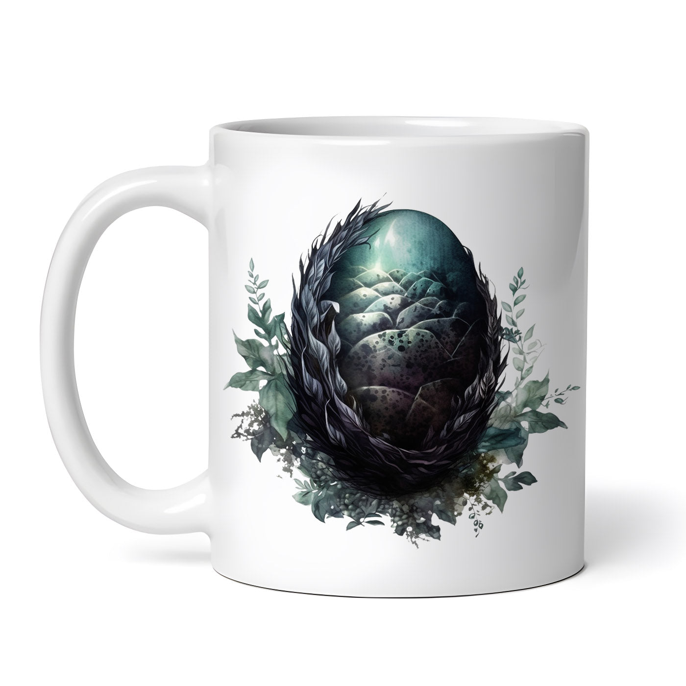 Cana ceramica, Ou de dragon in frunze, NO5216, 330 ml, Multicolor