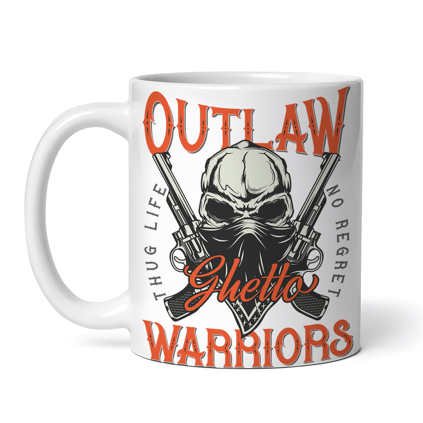 Cana ceramica, Outlanw Ghetto Warriors Thoug life no regret Craniu cu pistoale, NO2007, 330 ml, Multicolor
