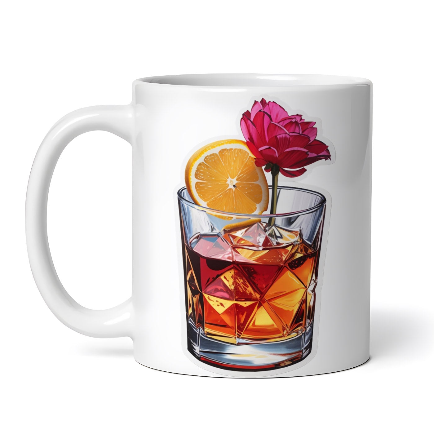 Cana ceramica, Pahar de cockail Sazerac cu trandafir, NO8838, 330 ml, Multicolor