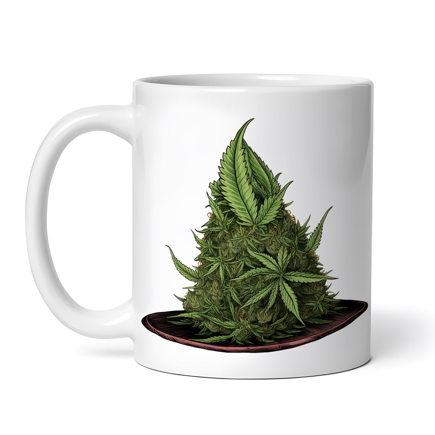 Cana ceramica, Palarie cu frunze de canabis, NO5517, 330 ml, Multicolor