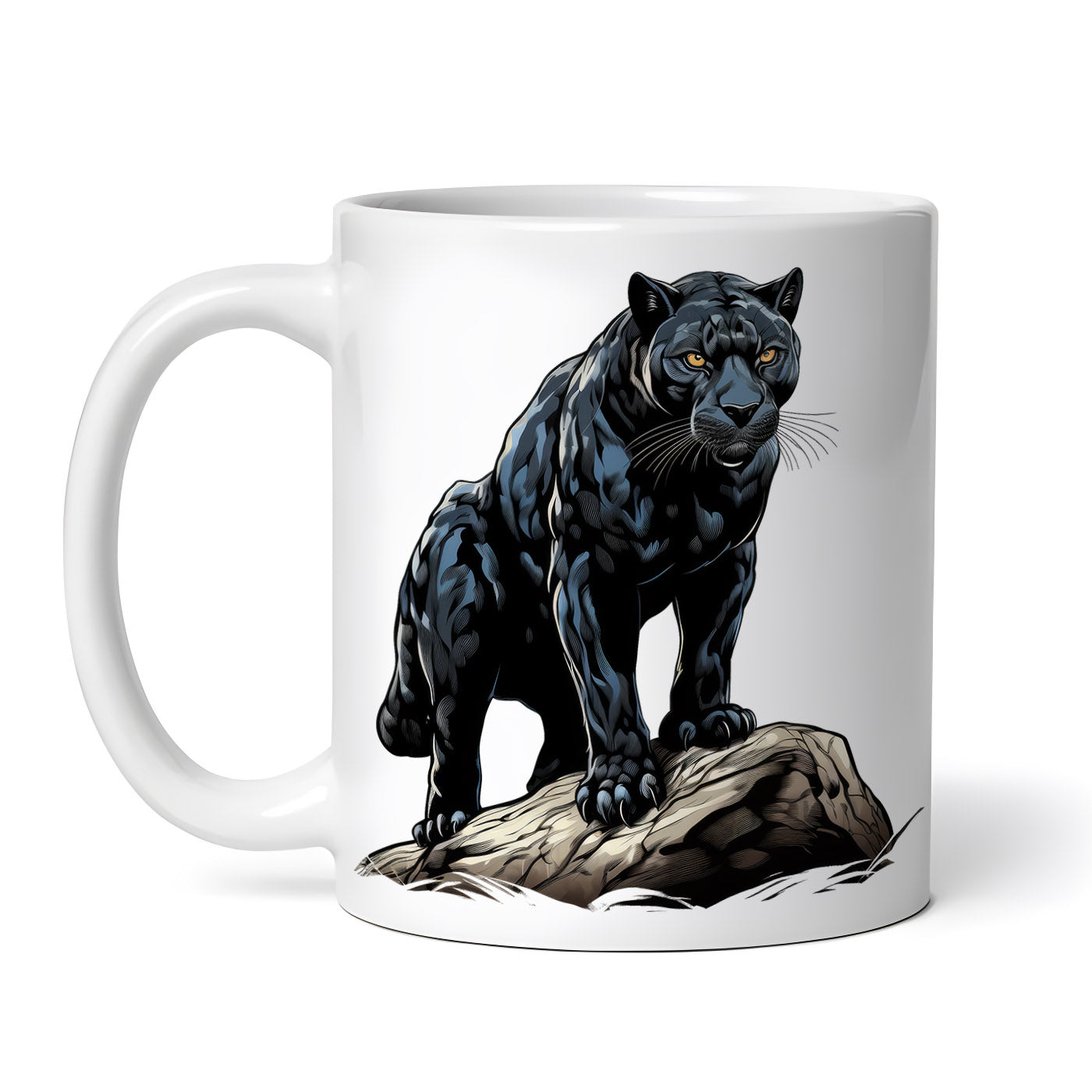 Cana ceramica, Pantera neagra pe stanca, NO2633, 330 ml, Multicolor