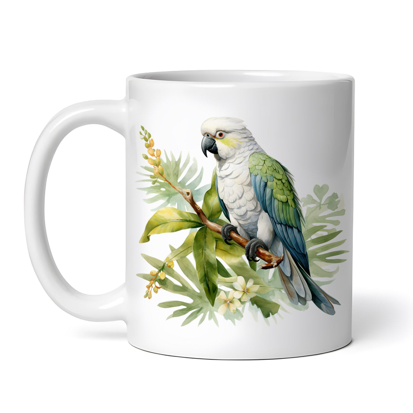Cana ceramica, Papagal alb in eucalipt, NO687, 330 ml, Multicolor