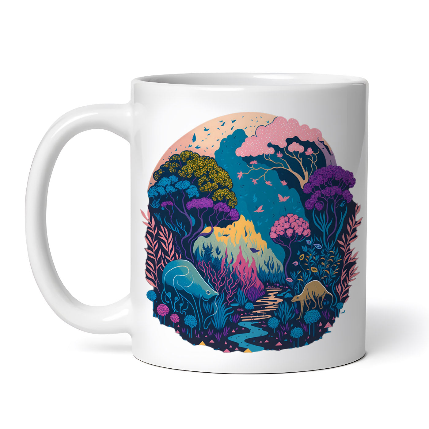 Cana ceramica, Peisaj din jungla, NO7145, 330 ml, Multicolor