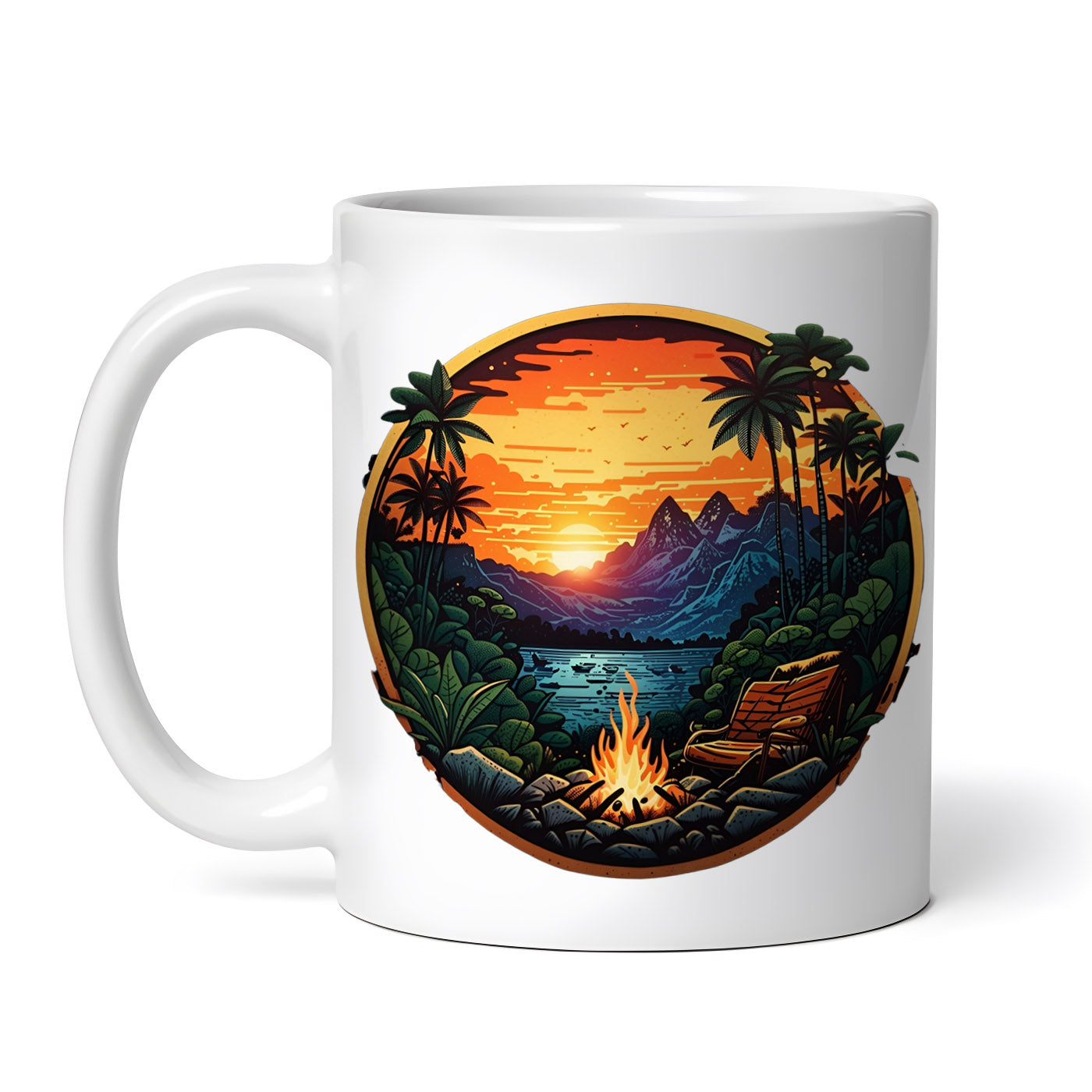 Cana ceramica, Peisaj in padure la apus, NO6738, 330 ml, Multicolor