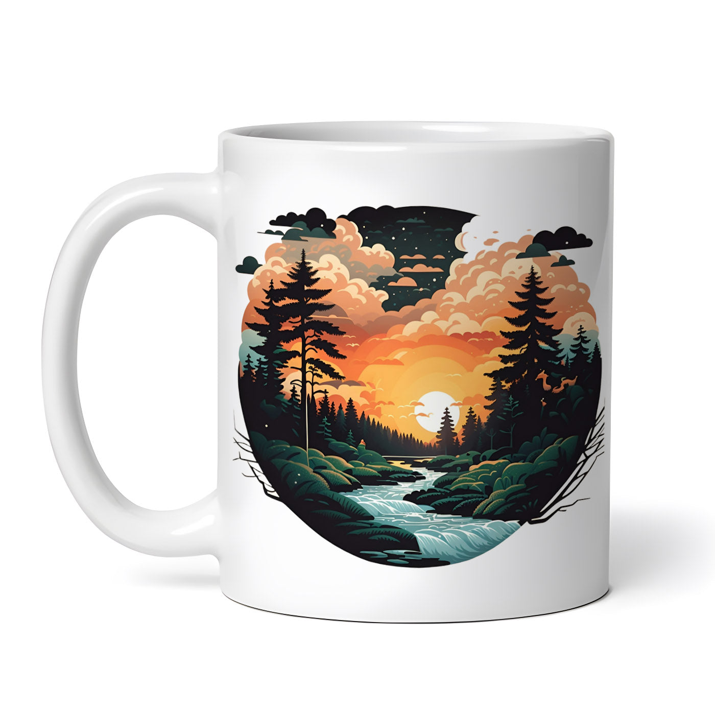 Cana ceramica, Peisaj padure rasarit, NO6739, 330 ml, Multicolor