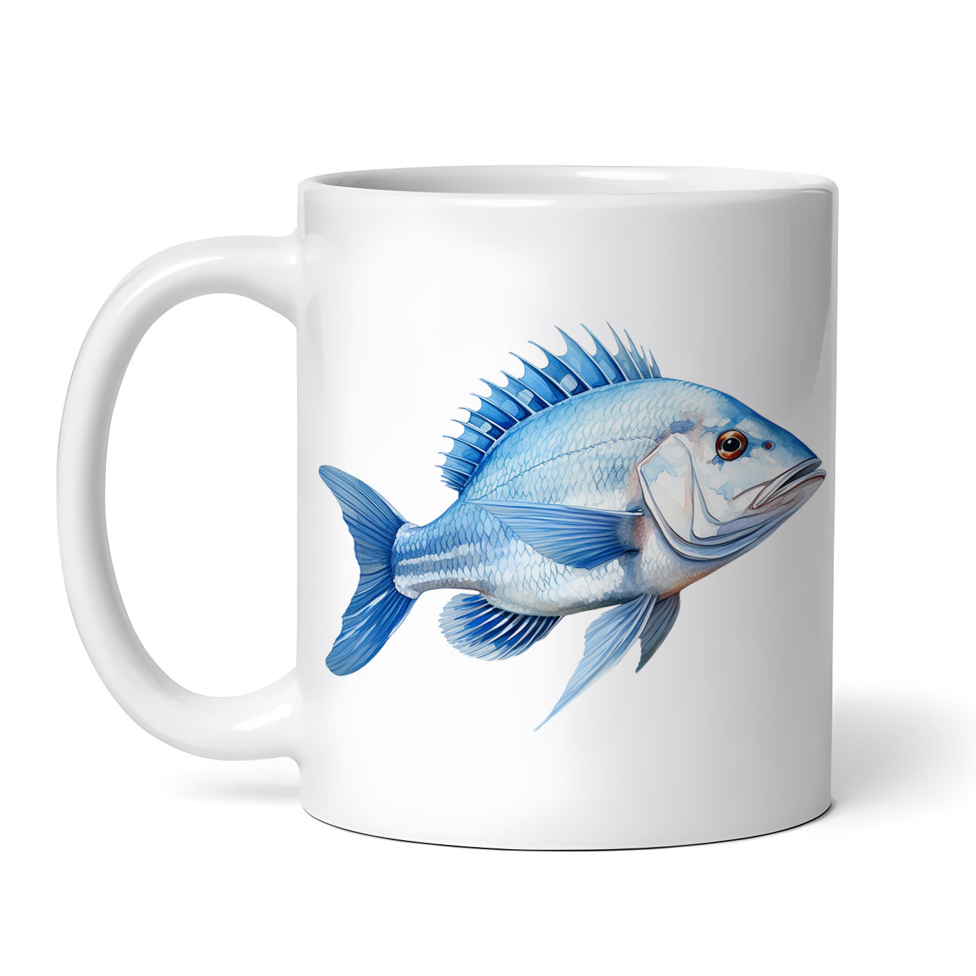 Cana ceramica, Pestele albastru Porgy, NO1474, 330 ml, Multicolor