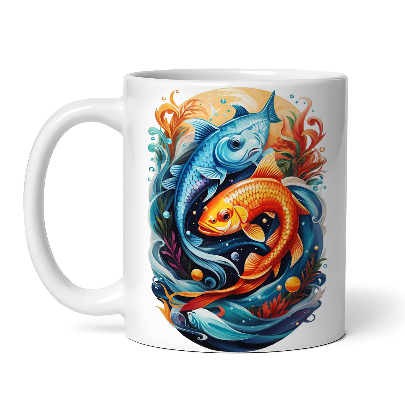 Cana ceramica, Pesti simbol zodia pesti, NO8725, 330 ml, Multicolor