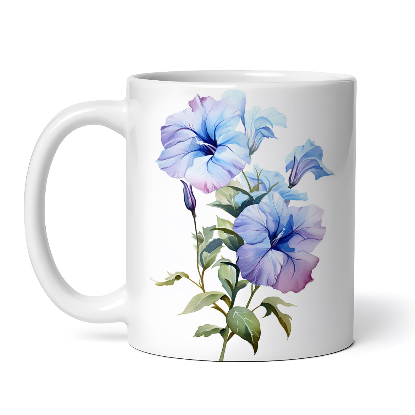 Cana ceramica, Petunii albastre cu frunze, NO4347, 330 ml, Multicolor