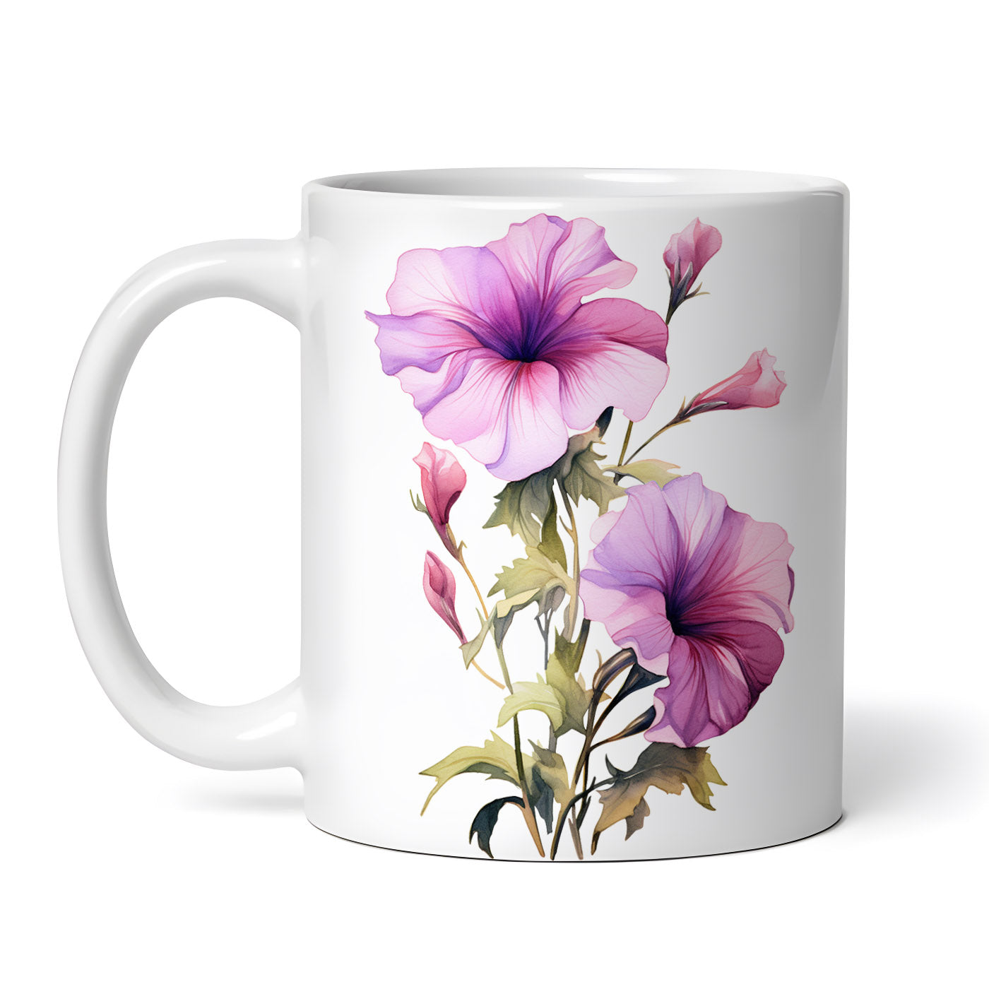 Cana ceramica, Petunii roz, NO1682, 330 ml, Multicolor