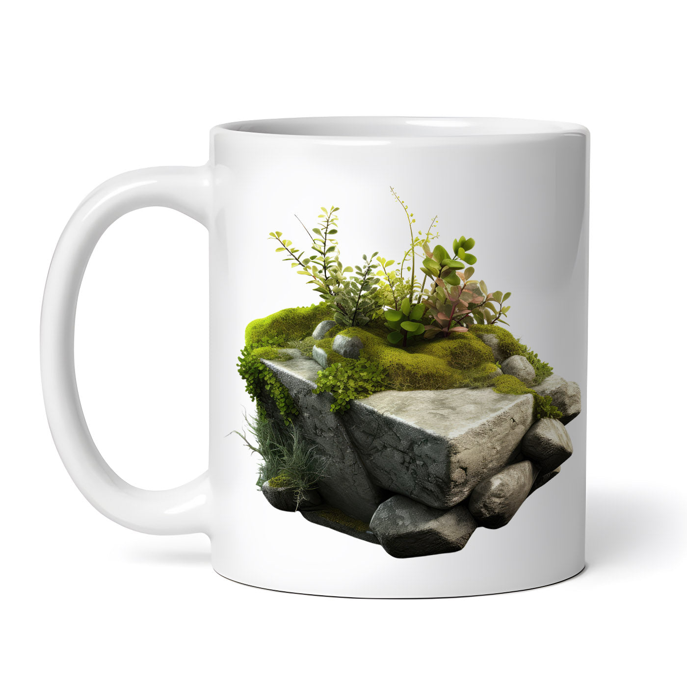 Cana ceramica, Piatra plante verzi si muschi de copac, NO4319, 330 ml, Multicolor