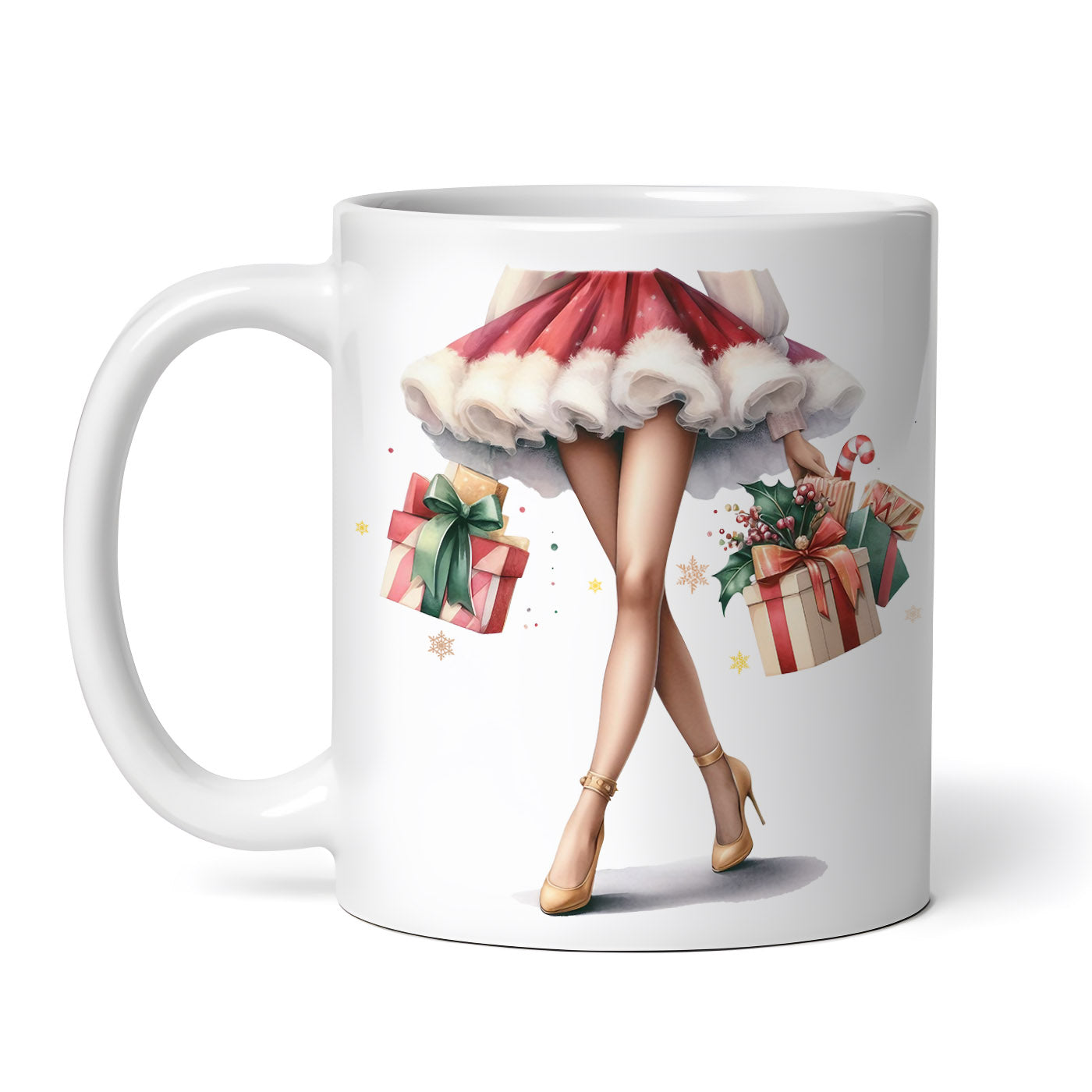 Cana ceramica, Picioare de femeie sexy cu cadouri de craciun Elena, NO593, 330 ml, Multicolor
