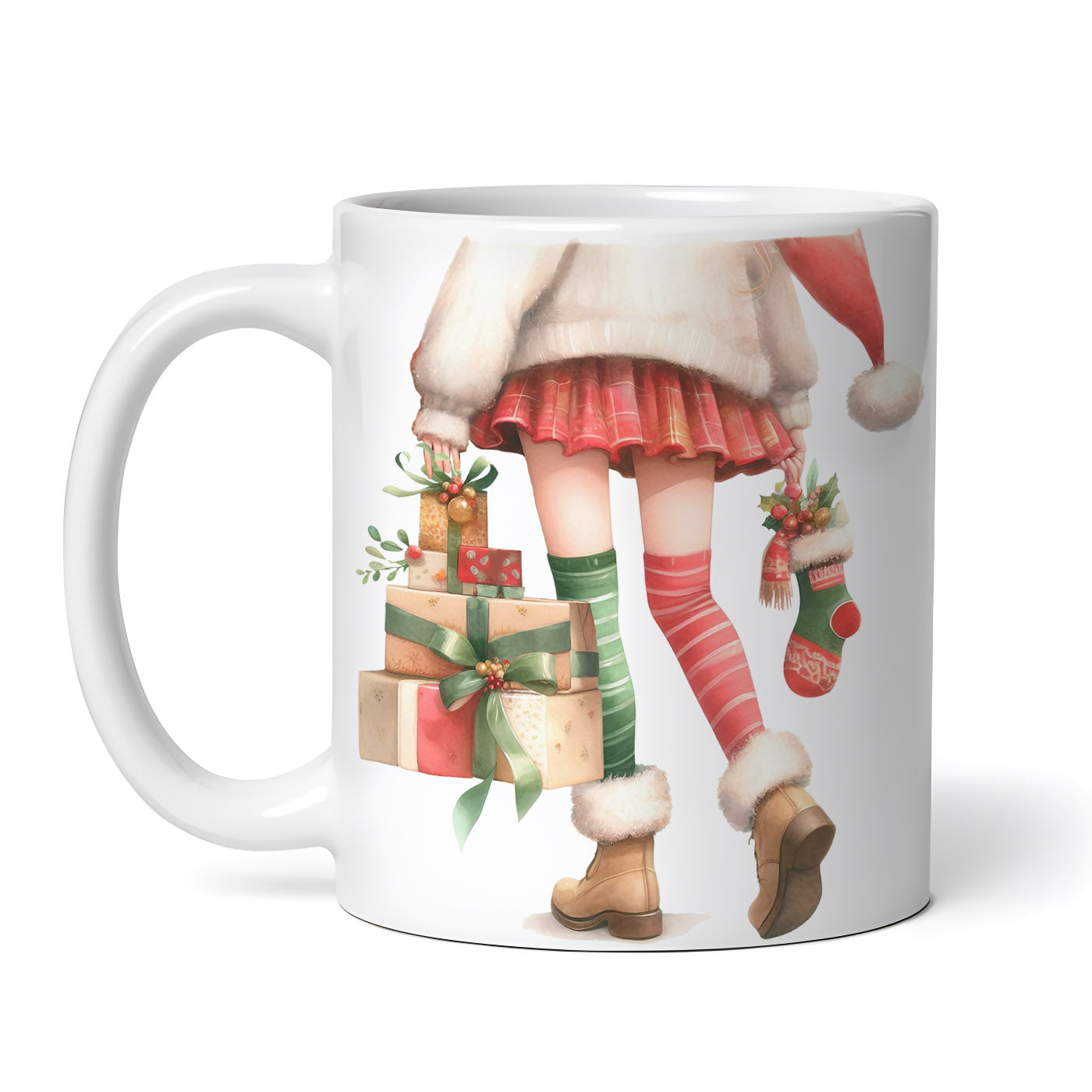 Cana ceramica, Picioare de femeie sexy cu cadouri de craciun Elisa, NO2694, 330 ml, Multicolor
