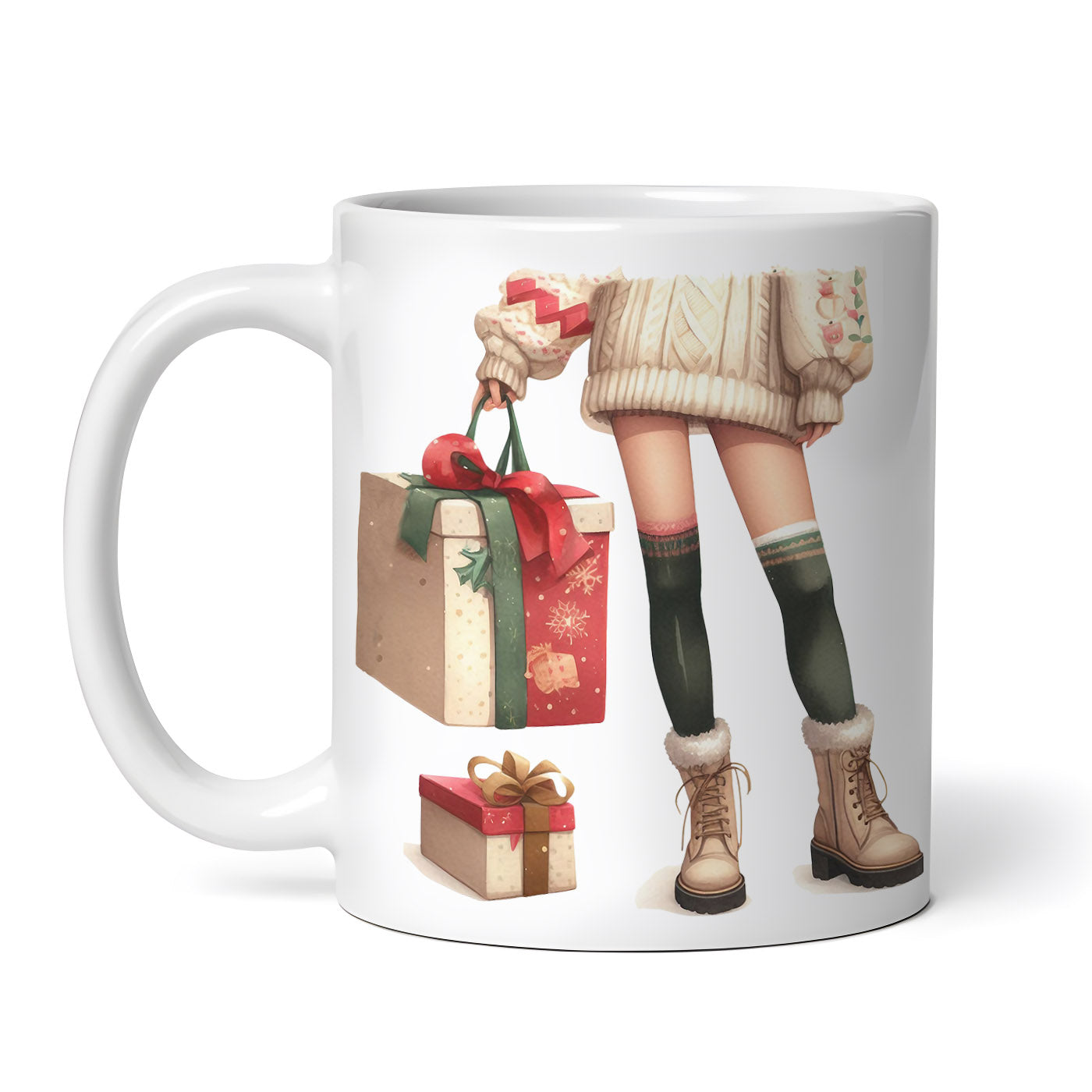 Cana ceramica, Picioare de femeie sexy cu cadouri de craciun Emma, NO2296, 330 ml, Multicolor