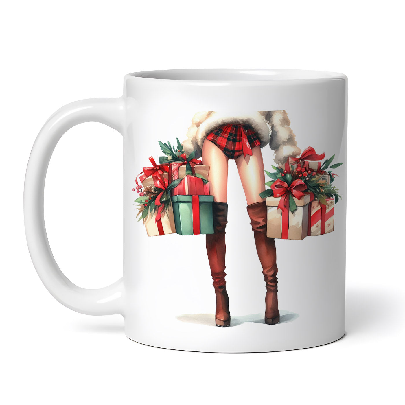 Cana ceramica, Picioare de femeie sexy cu cadouri de craciun Fabiana, NO5468, 330 ml, Multicolor