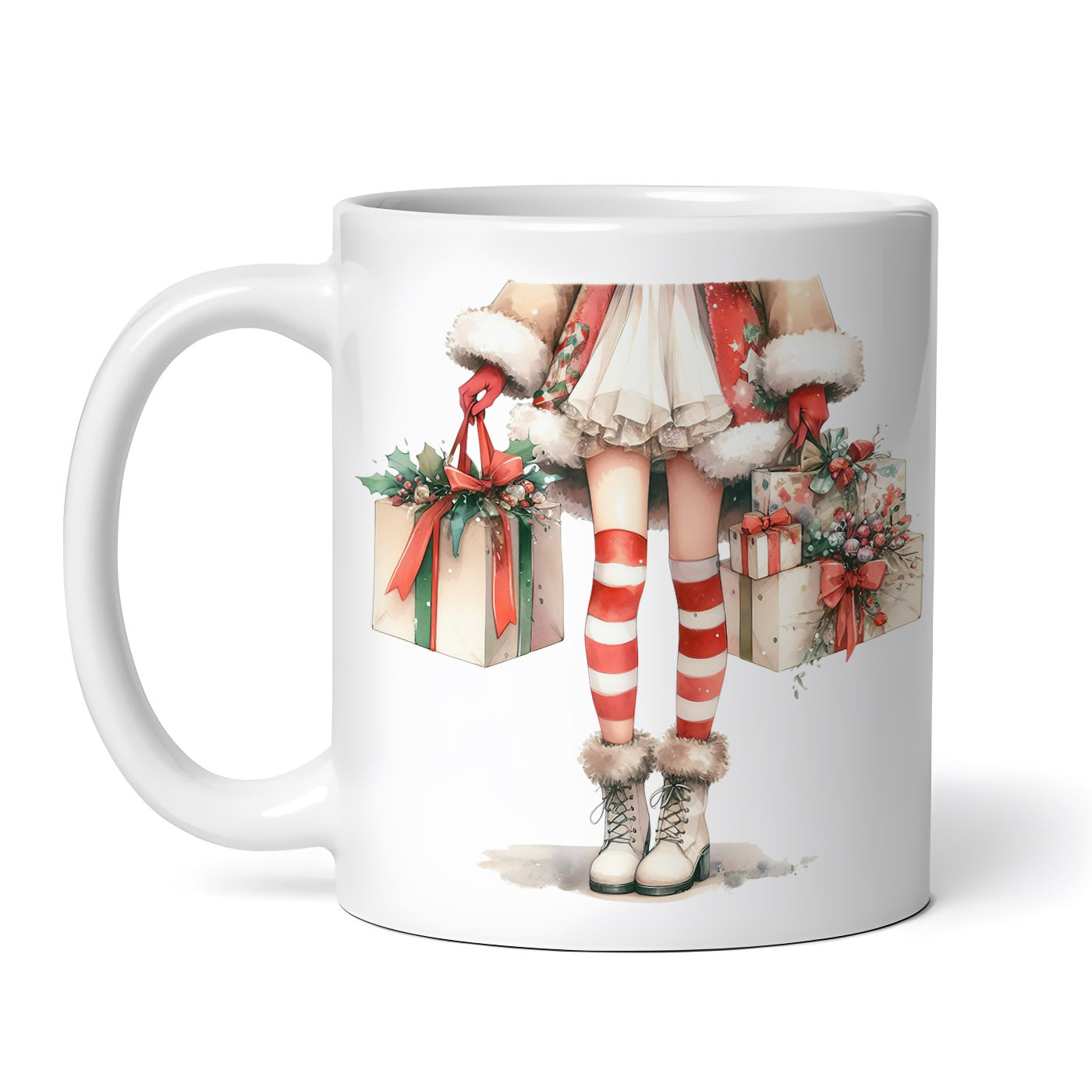 Cana ceramica, Picioare de femeie sexy cu cadouri de craciun Gloria, NO4212, 330 ml, Multicolor