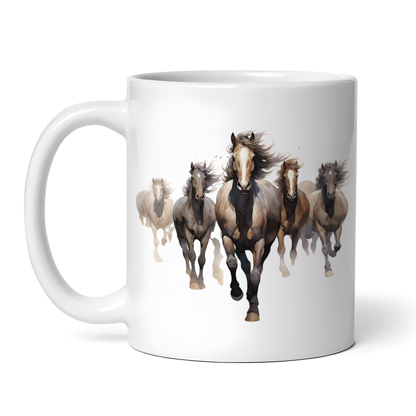 Cana ceramica, Pictura cu cai, NO2367, 330 ml, Multicolor