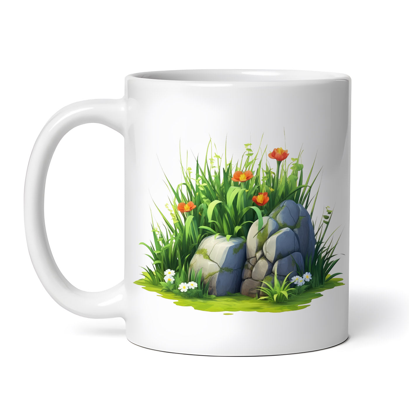 Cana ceramica, Pietre si flori, NO3491, 330 ml, Multicolor
