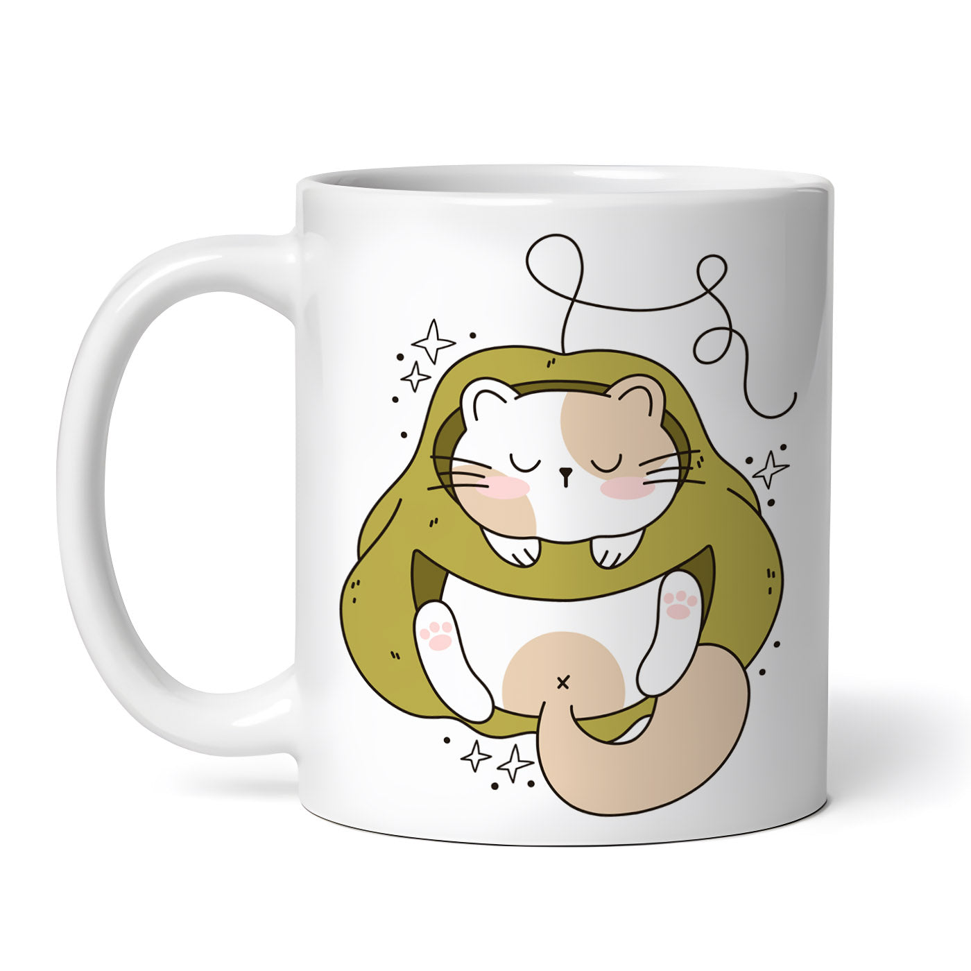 Cana ceramica, Pisica adormita Ziua recunostintei, NO11202, 330 ml, Multicolor