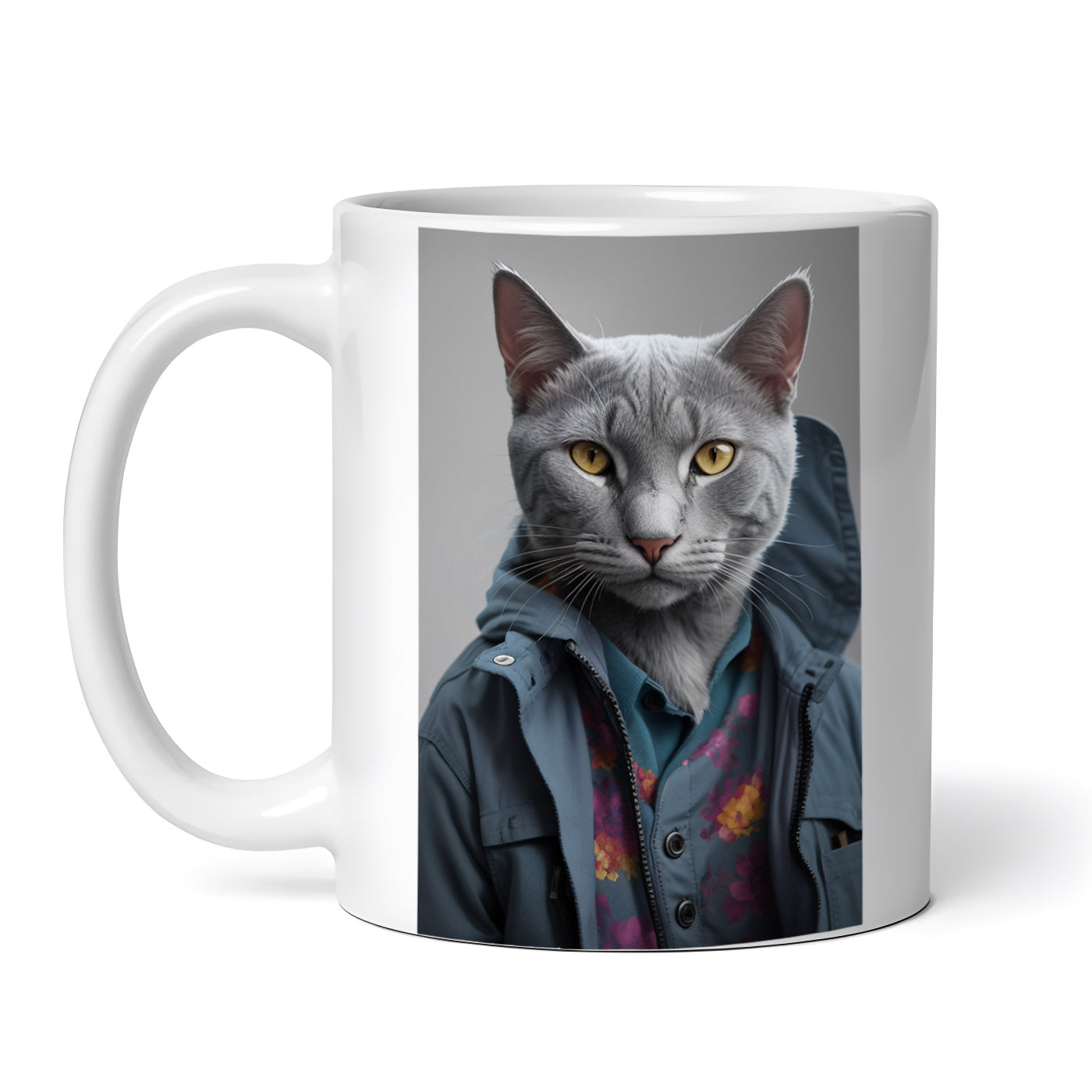 Cana ceramica, Pisica albastru de rusia cu jacheta, NO8819, 330 ml, Multicolor