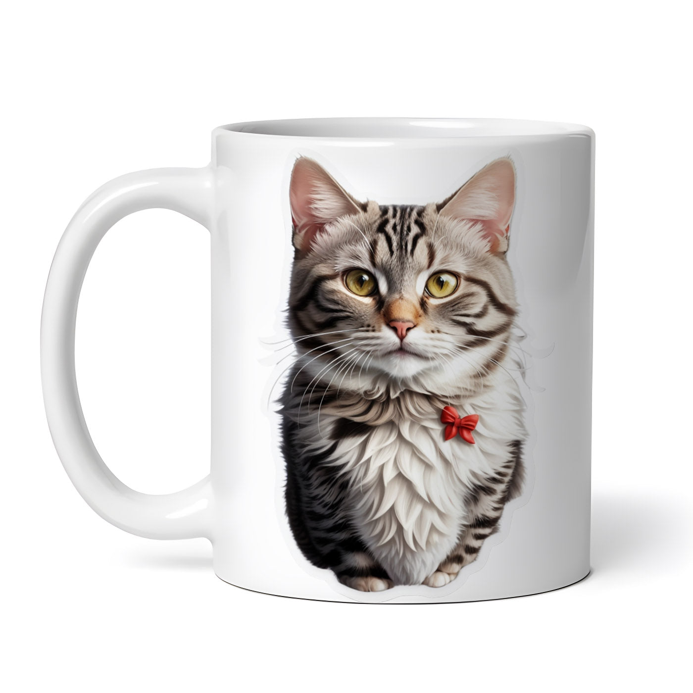 Cana ceramica, Pisica American wirehair cu fundita, NO7632, 330 ml, Multicolor