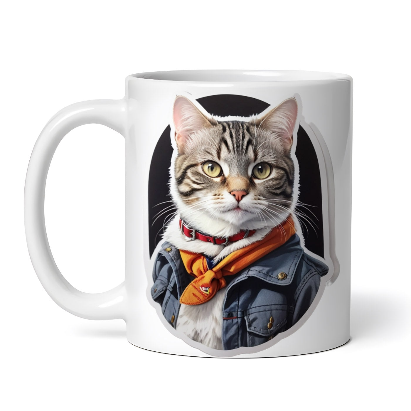 Cana ceramica, Pisica American wirehair cu jacheta, NO7631, 330 ml, Multicolor