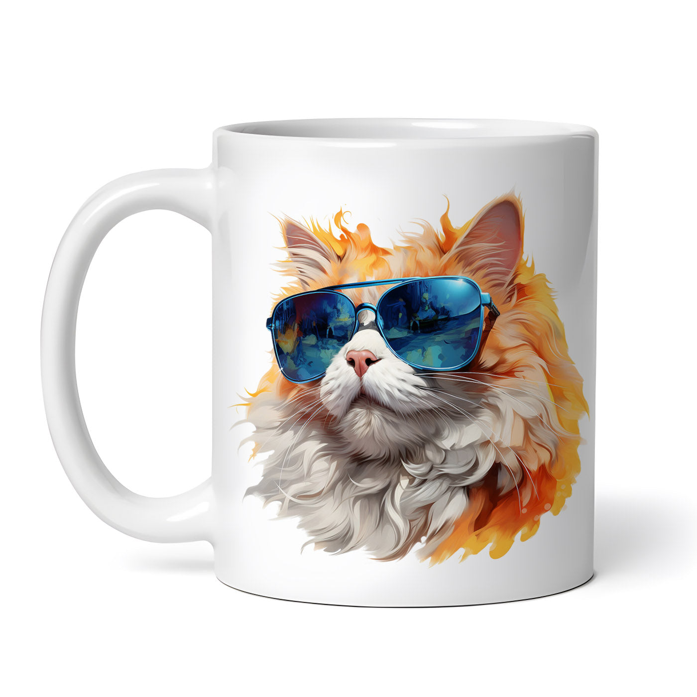 Cana ceramica, Pisica aurie cu ochelari, NO1633, 330 ml, Multicolor