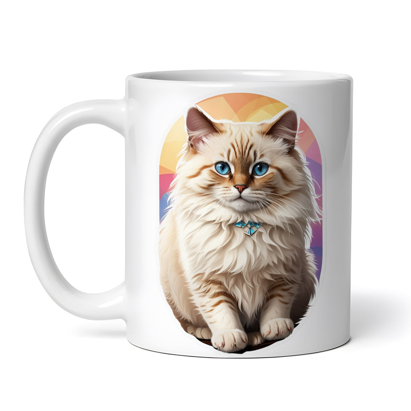 Cana ceramica, Pisica birmaneza cu medalion, NO7820, 330 ml, Multicolor