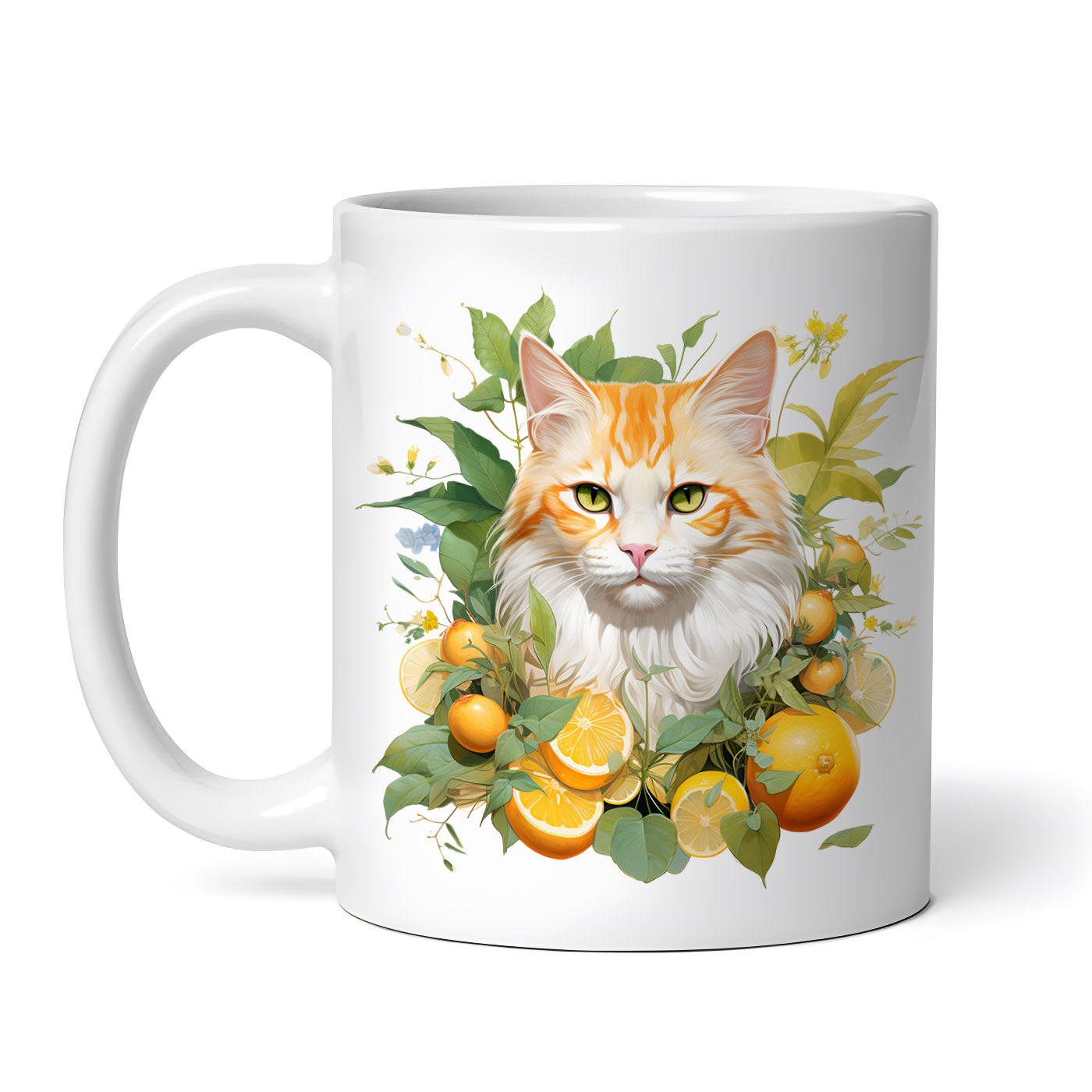 Cana ceramica, Pisica ci citrice, NO5566, 330 ml, Multicolor