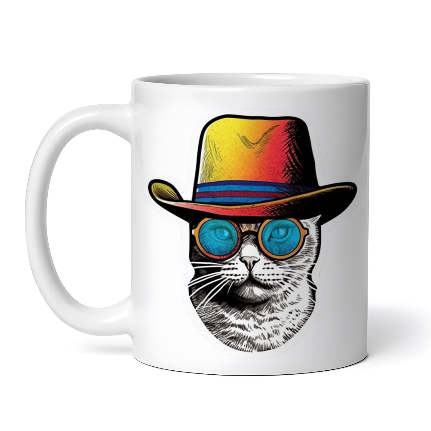 Cana ceramica, Pisica cool cu palarie, NO11211, 330 ml, Multicolor