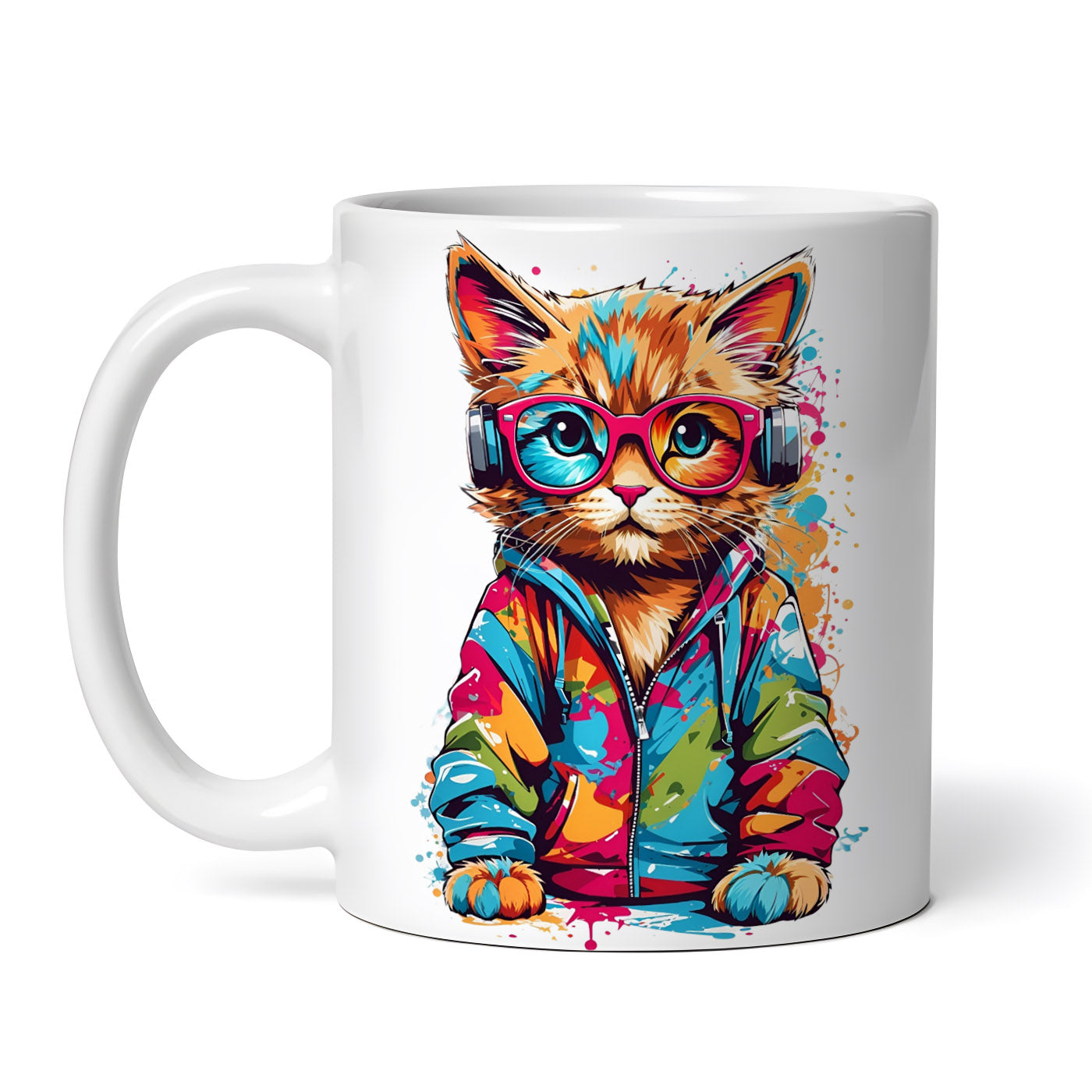 Cana ceramica, Pisica cu bluza si ochelari, NO7126, 330 ml, Multicolor