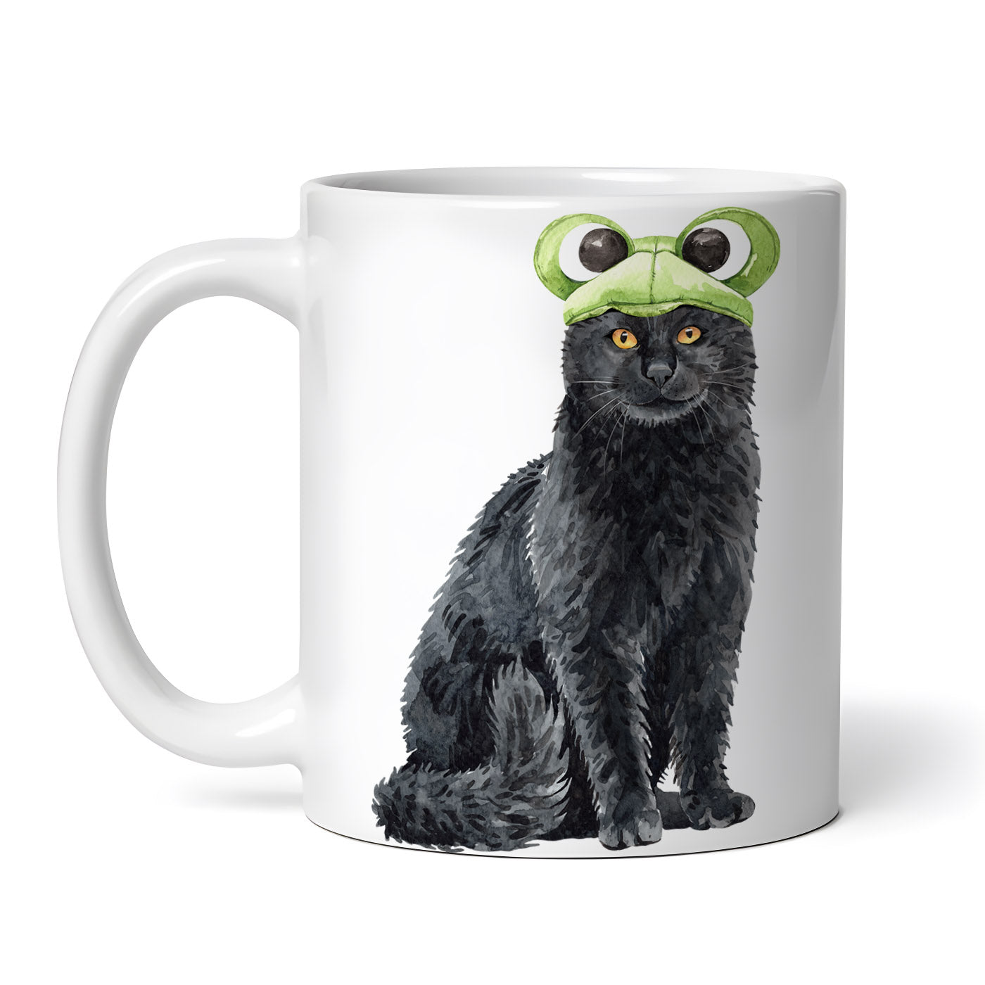 Cana ceramica, Pisica cu broasca pe cap, NO11217, 330 ml, Multicolor