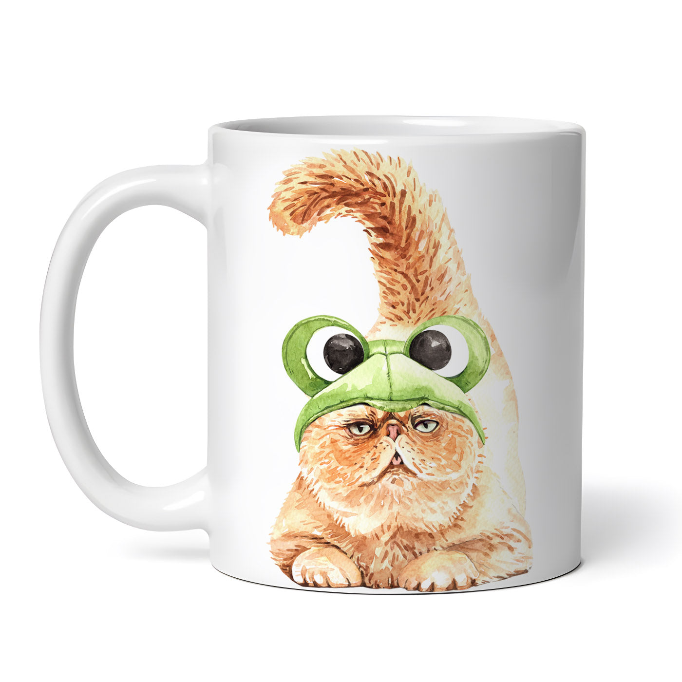 Cana ceramica, Pisica cu caciula broasca, NO11218, 330 ml, Multicolor