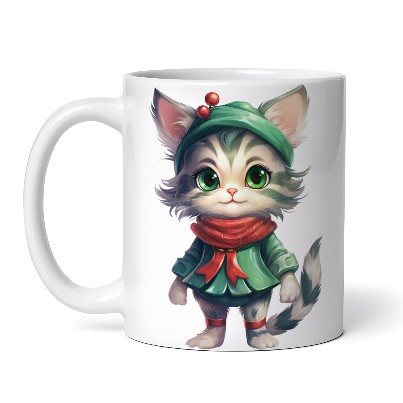 Cana ceramica, Pisica cu caciula verde, NO5970, 330 ml, Multicolor